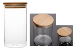 Glass storage jars with airtight bamboo lids, set of 3pcs